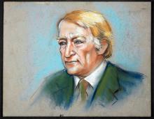 Unfinished portrait of Mark David Chapman, who murdered John Lennon. |