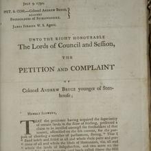 Unto the Right Honourable The Lords of Council and Session, The Petition and Complaint of Colonel Andrew Bruce younger of Stenhouse