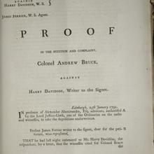 Proof In The Petition And Complaint, Colonel Andrew Bruce, Against Harry Davidson, Writer to the Signet