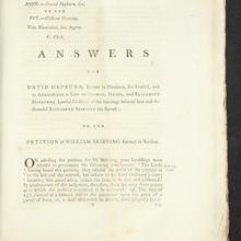 Charles Hay, of Newton, Lord Newton, "Answers for David Hepburn, Farmer in Pleasance, for himself, and as Administrator at Law to George, David, and Elizabeth Hepburns, Lawful Children of the marriage betwixt him and the deceased Elizabeth Skirving his Spouse; To The Petition of William Skirving Farmer in Kedlaw," 15 Jan 1793